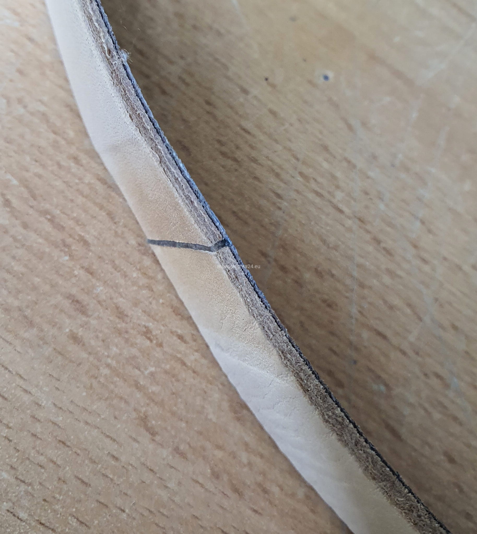 W związku z koniecznością dociśnięcia miejsca łączenia, jest tak małe odkształcenie skóry, które można zniwelować podszlifowując skórę.